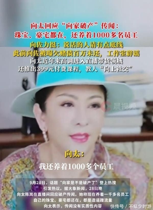 直至今年10月,甚至出现“向家破产”的流言。对此,向太在直播间回应称:珠宝仍在、豪宅未售,公司仍在运营并养活一千多名员工,间接否认了破产说法。